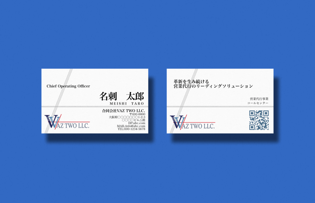 ▼アウトバウンドコール特化型の営業代行を行う会社様の名刺制作を担当いたしました。